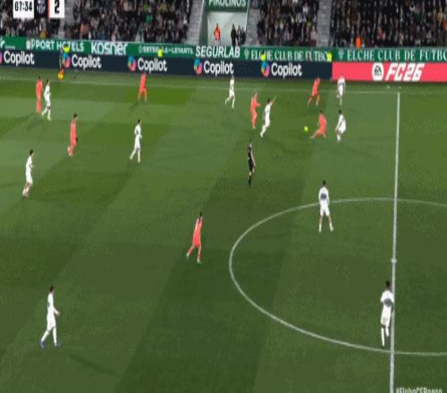 第40分鍾,埃爾切1-1!埃爾切高效反擊,拉什福德後點(diǎn)包抄近距離打門,奧爾莫反擊送精準(zhǔn)直塞,