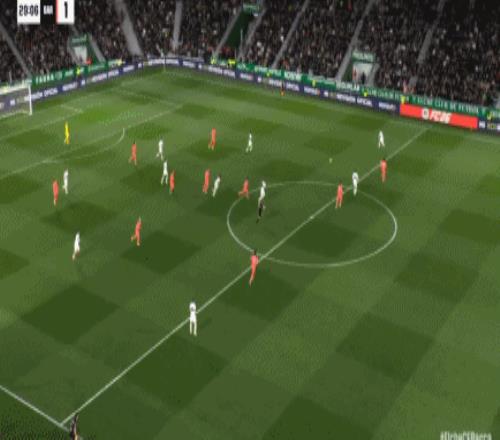 第24分鍾,費(fèi)爾明回做,費(fèi)爾明包抄近距離打門,阿爾瓦羅-羅德裏格斯兜射打偏