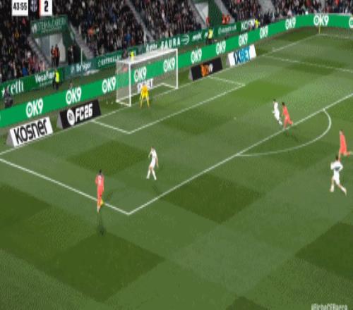 第36分鍾,良機(jī)巴薩後防被打穿,仍埃被對方擋出
